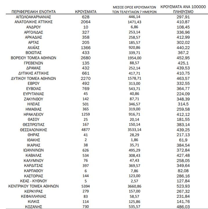 Αναλυτικά τα κρούσματα σε όλη τη χώρα
