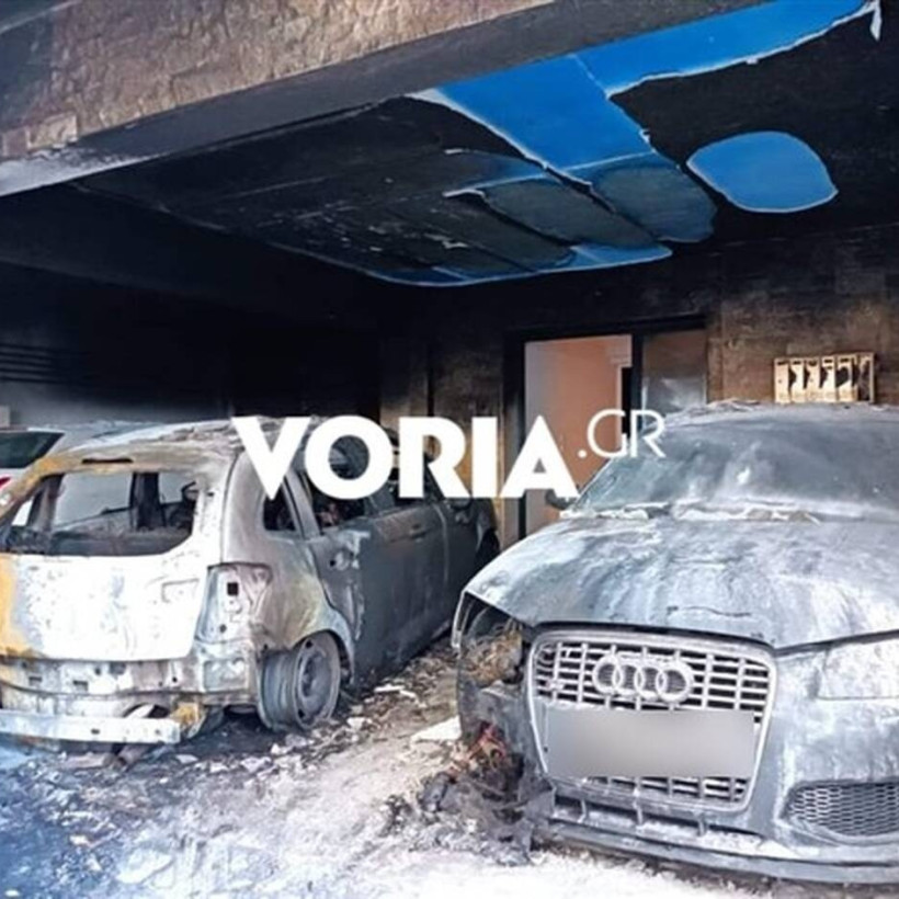 Θεσσαλονίκη: Στις φλόγες τέσσερα Ι.Χ. σε πολυκατοικία στις Συκιές