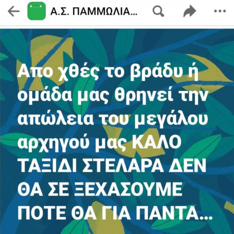 Την τραγική είδηση γνωστοποίησε με ανάρτηση του ο προπονητής Γιάννης Αποστόλου ο οποίος συνδεόταν μαζί του με πολύχρονη φιλία ενώ είχαν συνεργαστεί και σαν ποδοσφαιριστής με προπονητή.