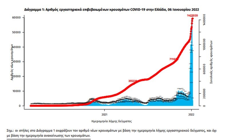 Τα στοιχεία που παρουσιάζονται αφορούν περιστατικά από την επιδημιολογική επιτήρηση της νόσου από το νέο κορονοϊό (COVID19), με βάση τα δεδομένα που έχουν δηλωθεί στον ΕΟΔΥ και καταγραφεί μέχρι τις 6 Ιανουαρίου 2022 (ώρα 15:00).