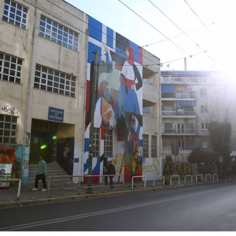 Το γκράφιτι, με τίτλο «Το πάνθεον των αγωνιστών του 21», αποτελεί έργο μιας ομάδας street artists οι οποίοι σε συνεργασία με το Δήμο Αθηναίων ζωγράφισαν σκηνές και ήρωες της Ελληνικής Επανάστασης σε διάφορα σχολικά κτίρια της πρωτεύουσας.