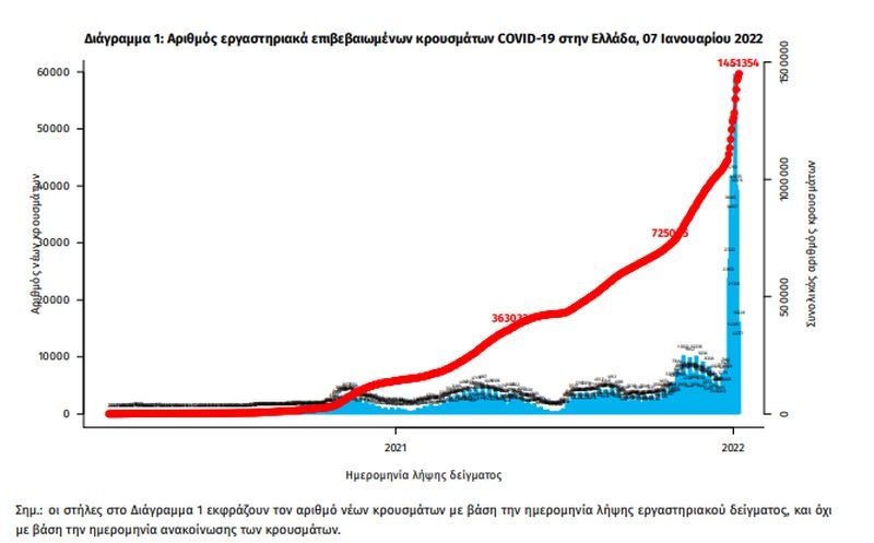 Τα στοιχεία που παρουσιάζονται αφορούν περιστατικά από την επιδημιολογική επιτήρηση της νόσου από το νέο κορονοϊό (COVID19), με βάση τα δεδομένα που έχουν δηλωθεί στον ΕΟΔΥ και καταγραφεί μέχρι τις 7 Ιανουαρίου 2022 (ώρα 15:00).