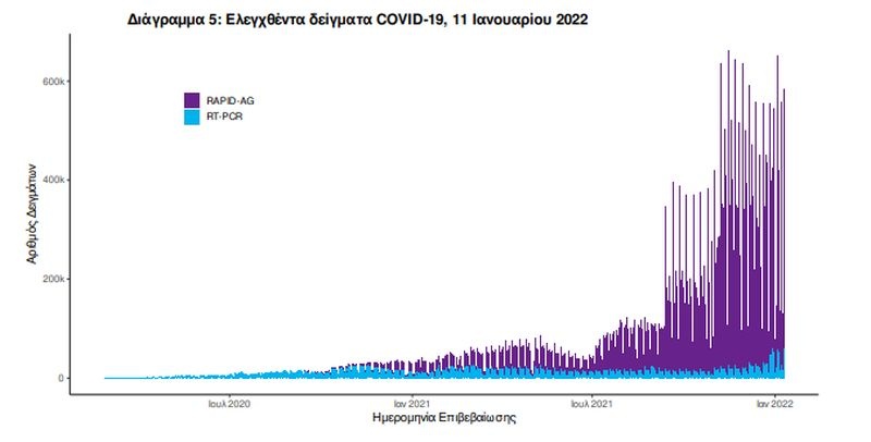 Από την 1η Ιανουαρίου 2020 μέχρι σήμερα, στα εργαστήρια που διενεργούν ελέγχους για τον νέο κορονοϊό (SARS-CoV-2) και που δηλώνουν συστηματικά το σύνολο των δειγμάτων που ελέγχουν, έχουν συνολικά ελεγχθεί 8.742.467 κλινικά δείγματα ενώ από Μονάδες Υγείας και Κλιμάκια του ΕΟΔΥ που διενεργούν ελέγχους Rapid Ag έχουν ελεγχθεί 42.357.581 δείγματα. O μέσος όρος του επταημέρου είναι 353.474 δειγματοληπτικοί έλεγχοι.
