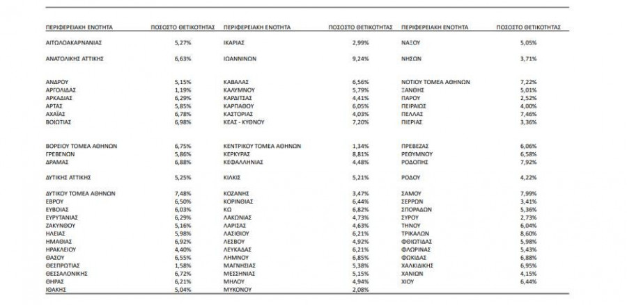 Πίνακας 3: Ποσοστό θετικότητας στο σύνολο των ελέγχων ανά Περιφερειακή Ενότητα με δεδομένα από 03 Ιανουαρίου 2022 έως 09 Ιανουαρίου 2022