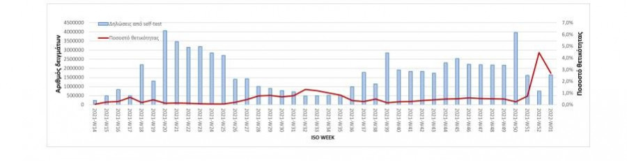 Διάγραμμα 10: Ποσοστό θετικότητας ανά ISO WEEK με βάση το σύνολο των αυτοδιαγνωστικών ελέγχων COVID-19