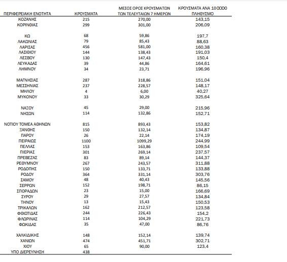 • 2.077 κρούσματα στην ΠΕ Κεντρικού Τομέα Αθηνών