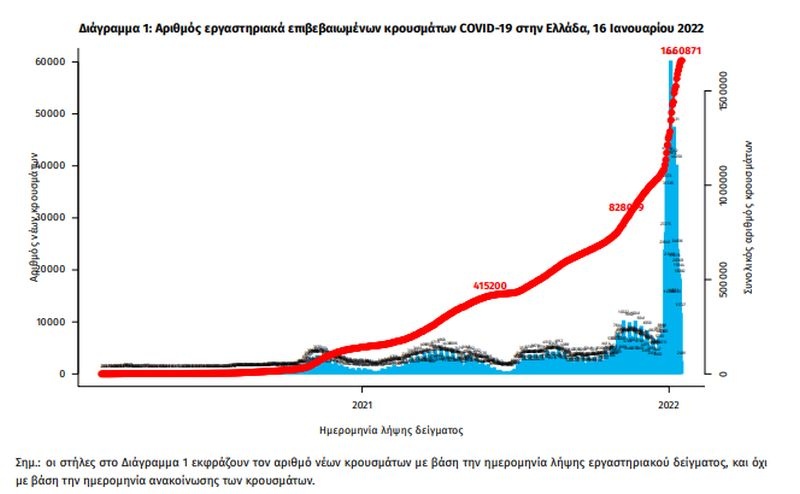 Τα στοιχεία που παρουσιάζονται αφορούν περιστατικά από την επιδημιολογική επιτήρηση της νόσου από το νέο κορονοϊό (COVID19), με βάση τα δεδομένα που έχουν δηλωθεί στον ΕΟΔΥ και καταγραφεί μέχρι τις 16 Ιανουαρίου 2022 (ώρα 15:00).