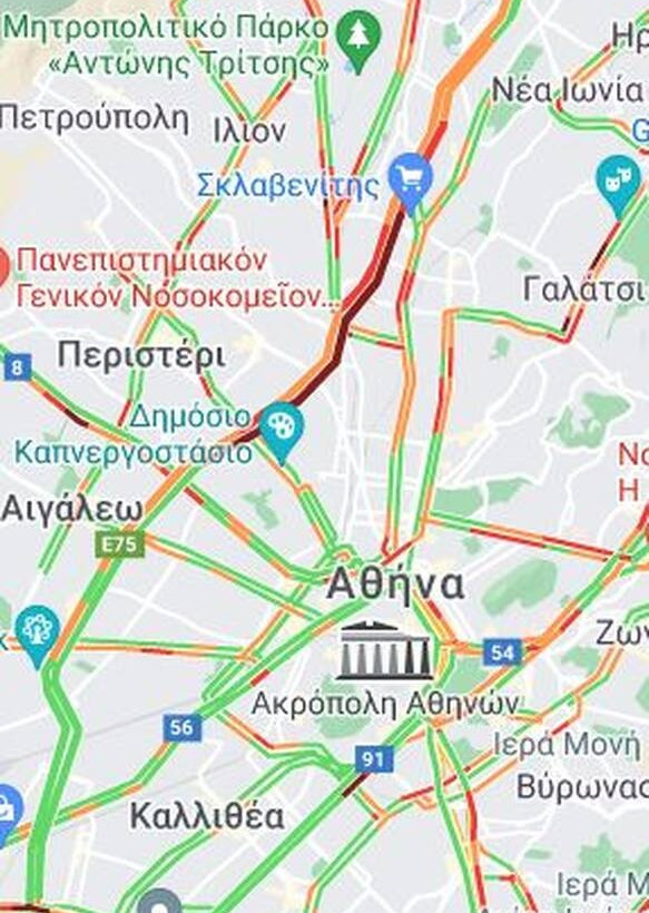H κίνηση στον Κηφισό Πηγή: Google Maps
