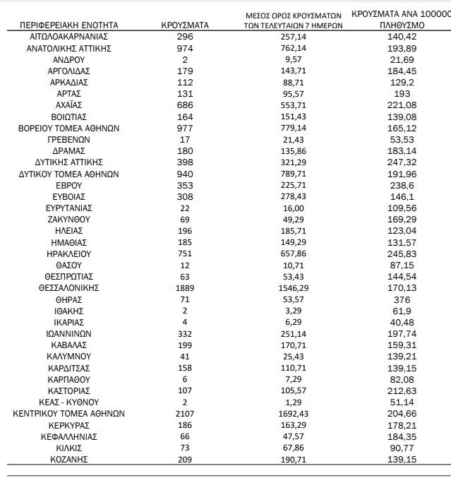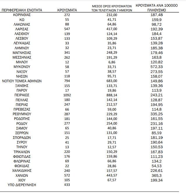 Αναλυτικά η κατανομή των κρουσμάτων