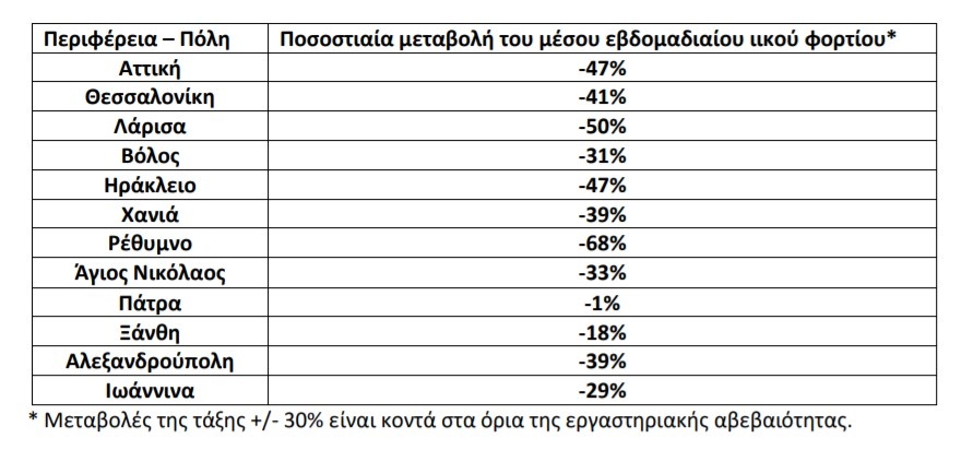 Οι καθαρά πτωτικές τάσεις κυμάνθηκαν από -31% στο Βόλο μέχρι -68% στο Ρέθυμνο, ενώ οριακές ήταν οι μειώσεις που παρατηρήθηκαν στην Ξάνθη (-18%) και στα Ιωάννινα (-29%). Το ιικό φορτίο των αστικών λυμάτων παρέμεινε σταθερό στην Πάτρα (-1%).