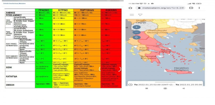 Ειδικότερα, το δεύτερο κύμα χαρακτηρίστηκε με τον υψηλότερο βαθμό προειδοποίησης με βάση τα Ευρωπαϊκά Δεδομένα της Eumetnet με κόκκινο συναγερμό, μέχρι τις πρωινές ώρες της Τρίτης 25 Ιανουαρίου 2022 όπου περιλαμβανόταν η Αττική.