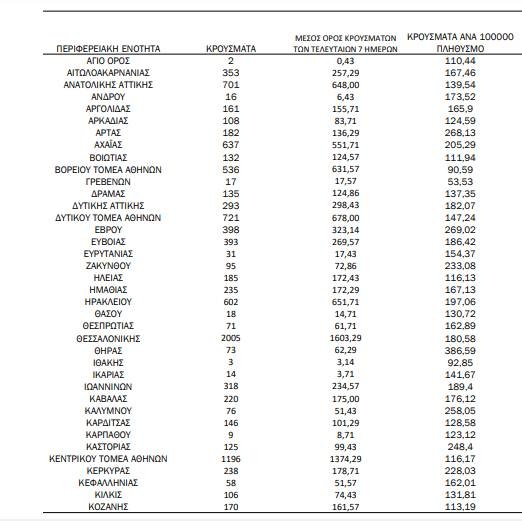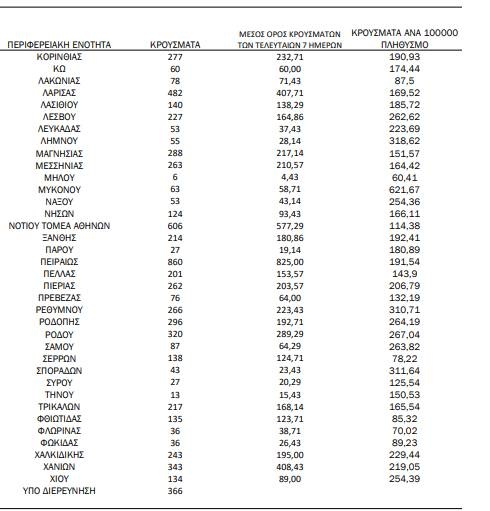 Αναλυτικά η κατανομή των κρουσμάτων
