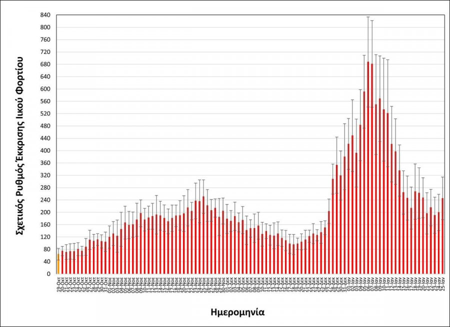 Συγκεκριμένα, στα δείγματα που λαμβάνονται καθημερινά στην είσοδο της Εγκατάστασης Επεξεργασίας Λυμάτων Θεσσαλονίκης, αναφορικά με τις εξορθολογισμένες τιμές σχετικής έκκρισης ιικού φορτίου, η μέση τιμή των δύο πιο πρόσφατων μετρήσεων, δηλαδή της Δευτέρας 24/01/2022 και της Τρίτης 25/01/2022 είναι:
