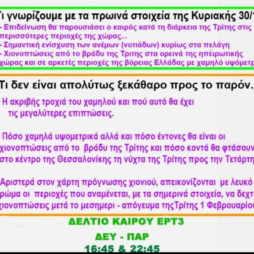 Οπως διευκρινίζει, μένει να διευκρινιστεί η ακριβής τροχιά του βαρομετρικού χαμηλού, η οποία και θα κρίνει τις περιοχές που θα έχουν τις μεγαλύτερες επιπτώσεις από τις χιονοπτώσεις.