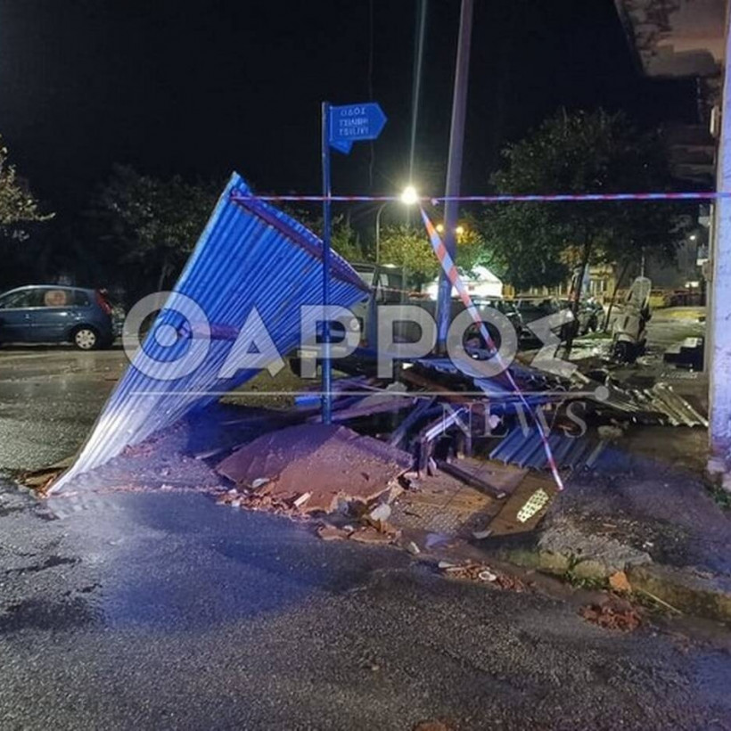 Καλαμάτα: Θυελλώδεις άνεμοι ξήλωσαν στέγαστρο - Άγιο είχε γυναίκα που περνούσε από το σημείο
