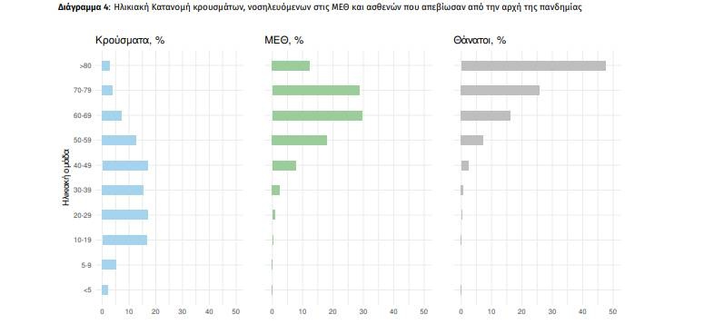 Οι εισαγωγές νέων ασθενών Covid-19 στα νοσοκομεία της επικράτειας είναι 496 (ημερήσια μεταβολή -9.32%). Ο μέσος όρος εισαγωγών του επταημέρου είναι 476 ασθενείς.Η διάμεση ηλικία των κρουσμάτων είναι 35 έτη (εύρος 0.2 έως 106 έτη), ενώ η διάμεση ηλικία των θανόντων είναι 78 έτη (εύρος 0.2 έως 106 έτη).