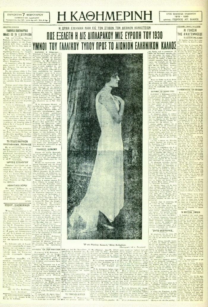 Επιβεβαιώνοντας τα προγνωστικά, αναδείχθηκε η ομορφότερη γυναίκα της Ευρώπης για το 1930. Η επιτυχία της πανηγυρίστηκε δεόντως και στην Αθήνα.