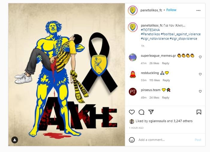 Συγκλονισμένο το πανελλήνιο και φυσικά όλος ο φίλαθλος κόσμος από τη δολοφονία του 19χρονου στη Θεσσαλονίκη.