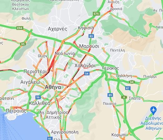 Μποτιλιάρισμα υπάρχει στην άνοδο και την κάθοδο του Κηφισού, στους δρόμους γύρω από το κέντρο της Αθήνας και το λιμάνι του Πειραιά, τη λεωφόρο Αθηνών, τη λεωφόρο Κηφισίας και τη Μεσογείων.