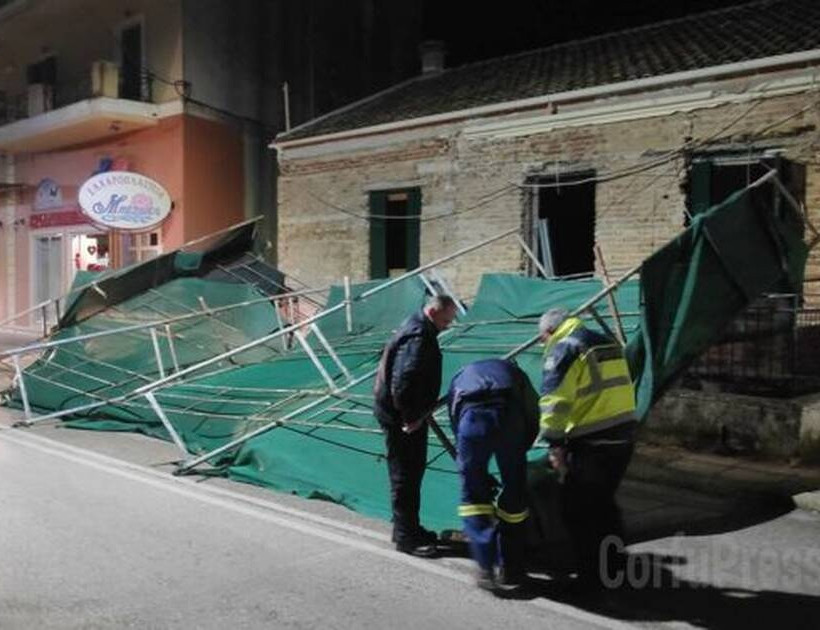 Ο αέρας παρέσυρε ολόκληρη σκαλωσιά στην περιοχή Γαρίτσα, στην Κέρκυρα