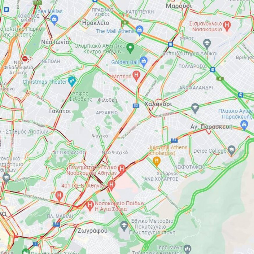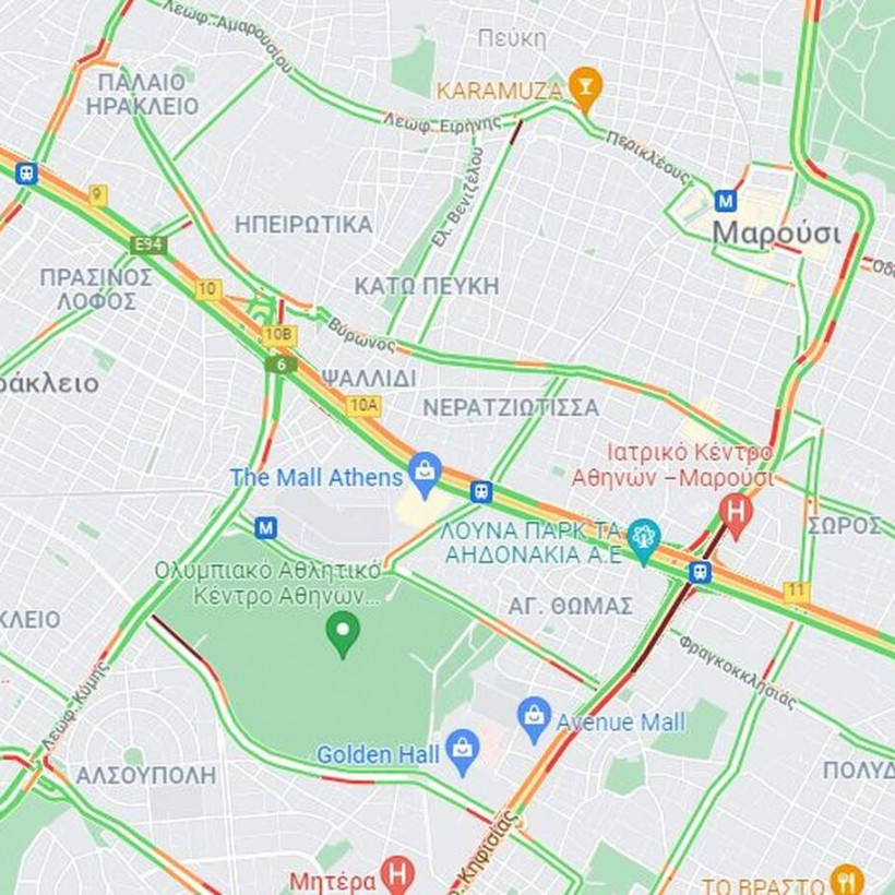 Παράλληλα, πολλά προβλήματα υπάρχουν αυτή την ώρα στη λεωφόρο Κηφισίας, και στα δυο ρεύματα, ενώ απροσπέλαστοι είναι οι δρόμοι γύρω από το κέντρο.