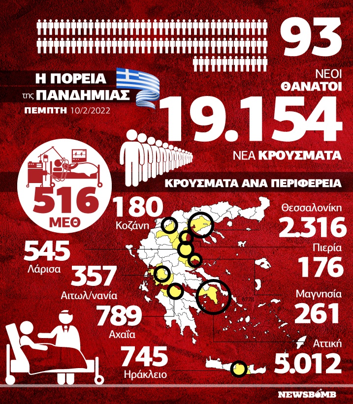 Κορονοϊός: 19.154 νέα κρούσματα, 93 νέοι θάνατοι, 516 διασωληνωμένοι - Όλα τα στοιχεία στο Infographic του Newsbomb.gr
