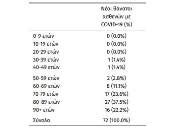 Οι νέοι θάνατοι ασθενών με COVID-19 είναι 72, ενώ από την έναρξη της επιδημίας έχουν καταγραφεί συνολικά 24.754 θάνατοι. Το 95.2% είχε υποκείμενο νόσημα ή/και ηλικία 70 ετών και άνω.