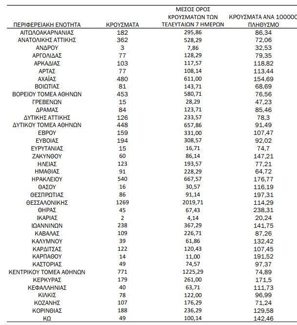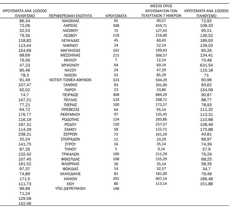 Αναλυτικά η κατανομή των κρουσμάτων