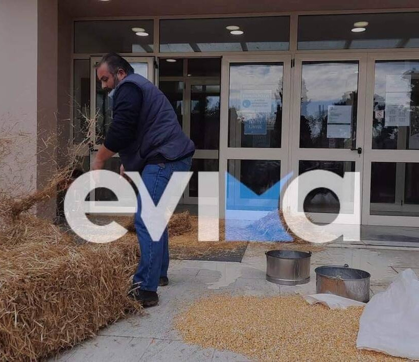 Χαλκίδα: Έξω από το κτίριο της περιφέρειας οι αγρότες – Γέμισαν με σανό την είσοδο