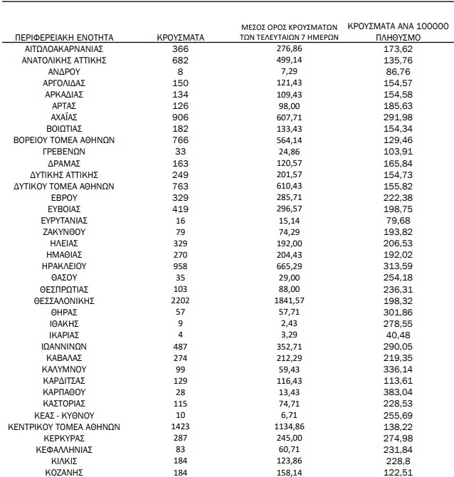 Κορονοϊός: Η κατανομή των 20.361 νέων λοιμώξεων - 5.455 στην Αττική και 2.202 στη Θεσσαλονίκη