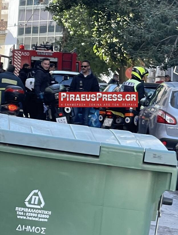 Στο σημείο έχουν σπεύσει ισχυρές δυνάμεις της Πυροσβεστικής και της ΕΛΑΣ καθώς και η μοτοσικλέτα του ΕΚΑΒ. Πηγή: piraeuspress.gr