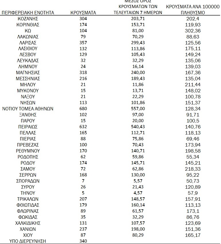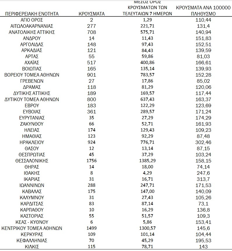 Η κατανομή των κρουσμάτων σε ολόκληρη τη χώρα: