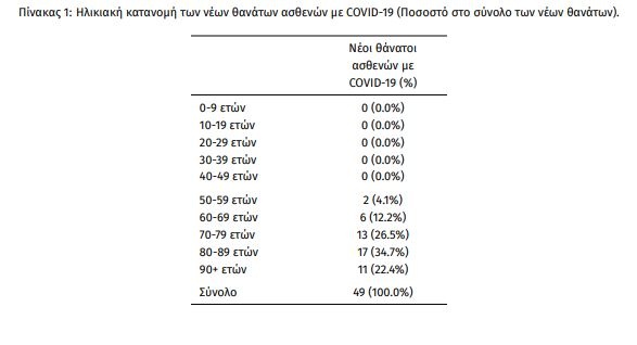 Οι νέοι θάνατοι ασθενών με COVID-19 είναι 49, ενώ από την έναρξη της επιδημίας έχουν καταγραφεί συνολικά 26.473 θάνατοι. Το 95.2% είχε υποκείμενο νόσημα ή/και ηλικία 70 ετών και άνω.