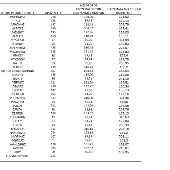 Η κατανομή των κρουσμάτων σε ολόκληρη τη χώρα: