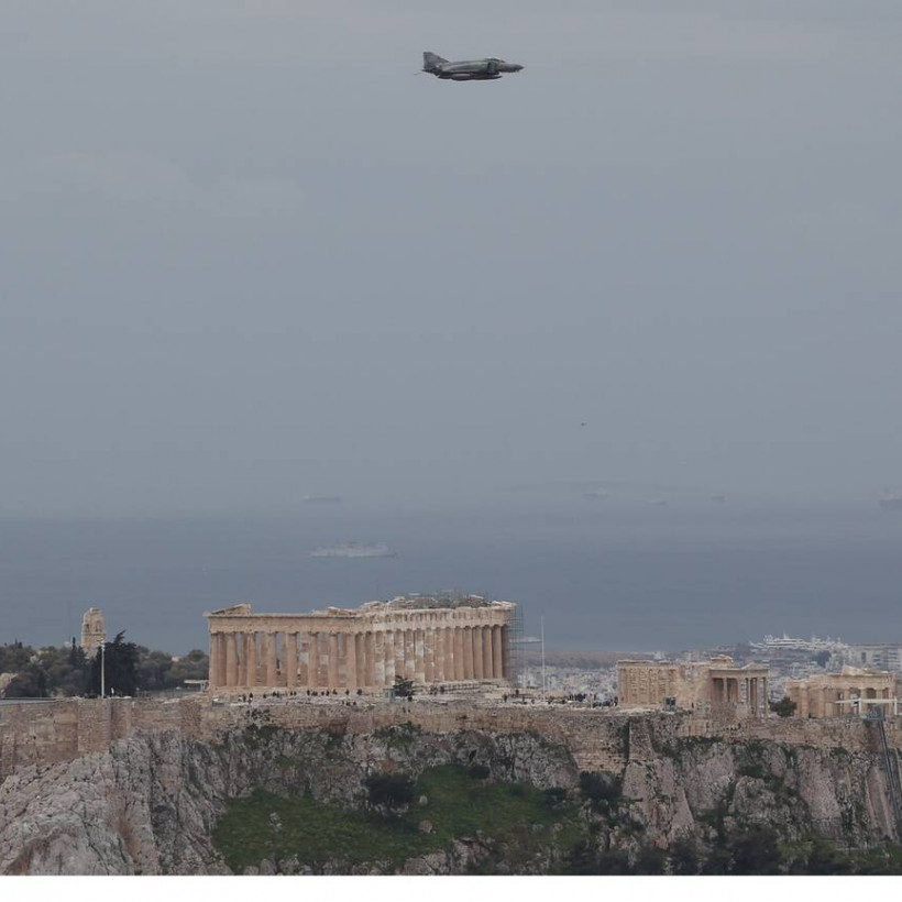 Τα μαχητικά αεροσκάφη και τα στρατιωτικά ελικόπτερα κάνουν δοκιμαστικές πτήσεις εν όψει της στρατιωτικής παρέλασης για τον εορτασμό της 25ης Μαρτίου
