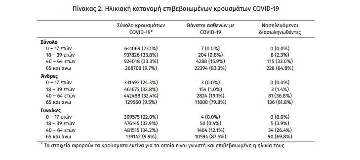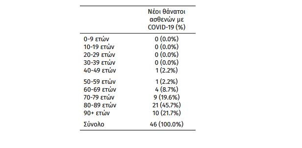 Πίνακας 1: Ηλικιακή κατανομή των νέων θανάτων ασθενών με COVID-19 (Ποσοστό στο σύνολο των νέων θανάτων).