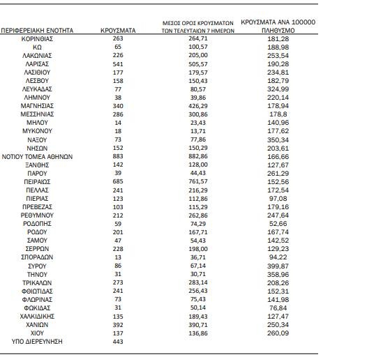 Κορονοϊός - Η γεωγραφική κατανομή των 19.705 κρουσμάτων: 6.736 στην Αττική, 2.057 στη Θεσσαλονίκη