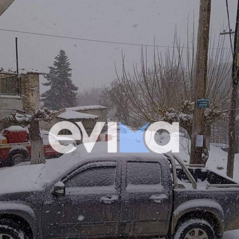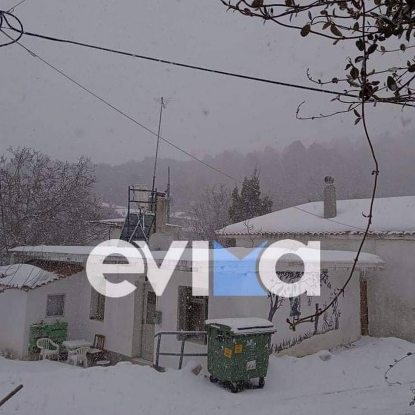 Μάρτης - γδάρτης στην Εύβοια με λευκό τοπίο σε αρκετές περιοχές