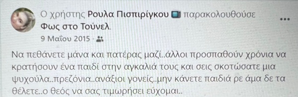 Πάτρα: Όλες οι αναρτήσεις της Ρούλας Πισπιρίγκου, της μητέρας των τριών κοριτσιών που πέθαναν μέσα σε τρία μόλις χρόνια, έχουν προκαλέσει αίσθηση - Αυτή όμως είναι ίσως η πιο ανατριχιαστική