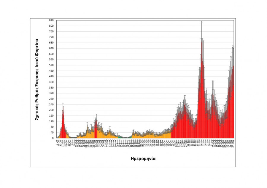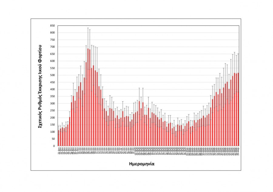 Όπως φαίνεται στα διαγράμματα που παρουσιάζει το ΑΠΕ-ΜΠΕ το ιικό φορτίο βρίσκεται στο υψηλότερο επίπεδο των τελευταίων δύο μηνών και προσεγγίζει τις ανώτατες τιμές της πανδημίας, οι οποίες καταγράφηκαν το πρώτο δεκαήμερο του φετινού Ιανουαρίου. Στις μετρήσεις του τελευταίου διημέρου διαφαίνεται μία τάση επιβράδυνσης του ρυθμού αύξησης του ιικού φορτίου.