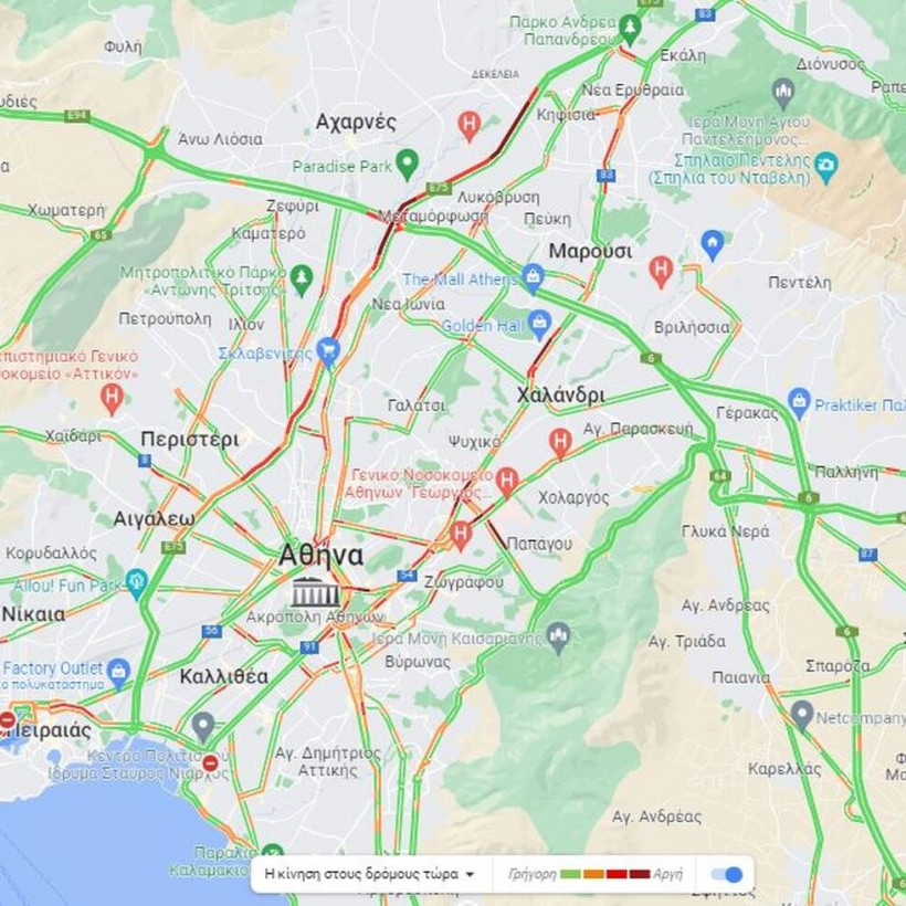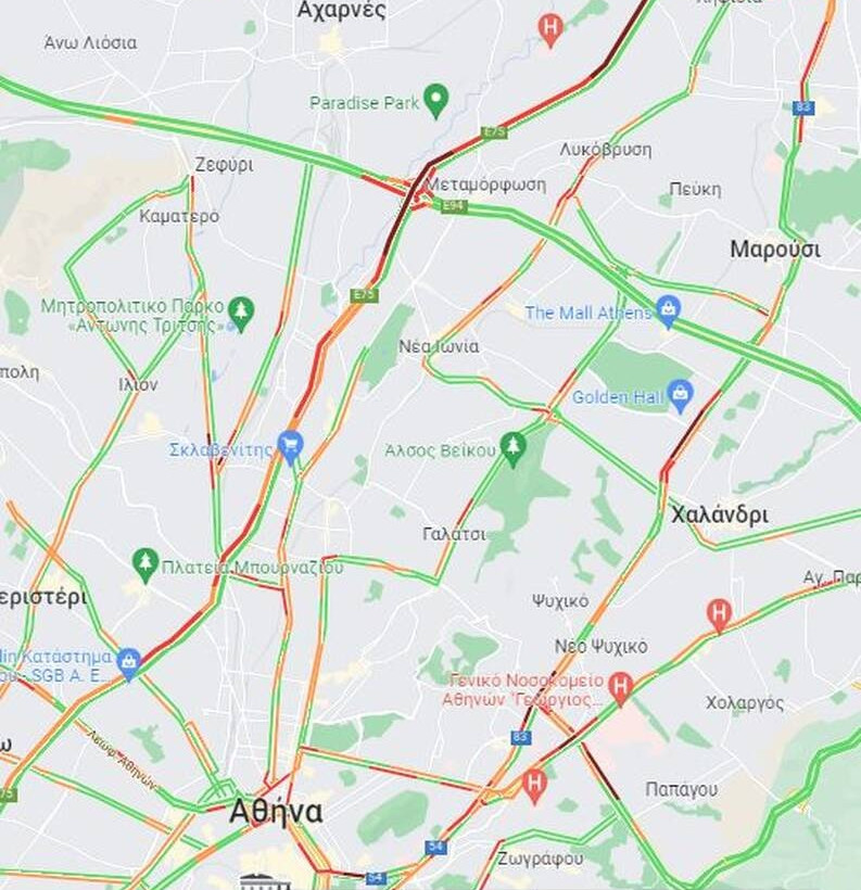 Η κίνηση και η ταλαιπωρία ξεκινά από το ύψος της Νέας Φιλαδέλφειας και συνεχίζεται μέχρι το ύψος της Βαρυμπόμπη.