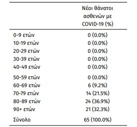 Πίνακας 1: Ηλικιακή κατανομή των νέων θανάτων ασθενών με COVID-19 (Ποσοστό στο σύνολο των νέων θανάτων).