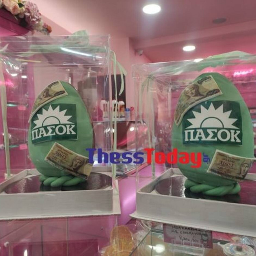 Ένα πρωτότυπο γλυκό για το Πάσχα παρασκευάζει ζαχαροπλαστείο στην Κατερίνη, όπου ανάμεσα στις τούρτες και στις πάστες φιγουράρουν σοκολατένια αυγά ΠΑΣΟΚ, τα οποία έχουν αποδειχθεί best seller και ξεπουλούν αμέσως μόλις βγουν από το εργαστήριο.