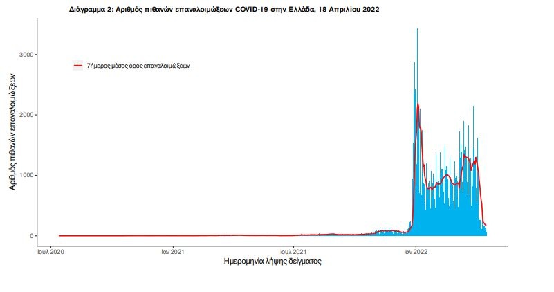 Ο αριθμός πιθανών νέων επαναλοιμώξεων που καταγράφηκαν τις τελευταίες 24 ώρες ήταν 85 ενώ από την αρχή της πανδημίας SARS-CoV-2 ο συνολικός αριθμός εκτιμάται σε 120.235(3.6% του συνολικού αριθμού των θετικών αποτελεσμάτων).