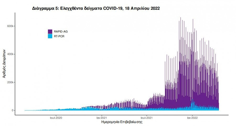 Δείγματα που έχουν ελεγχθεί: Από την 1η Ιανουαρίου 2020 μέχρι σήμερα, στα εργαστήρια που διενεργούν ελέγχους για τον νέο κορωνοϊό (SARS-CoV-2) και που δηλώνουν συστηματικά το σύνολο των δειγμάτων που ελέγχουν, έχουν συνολικά ελεγχθεί 10.860.628 κλινικά δείγματα ενώ από Μονάδες Υγείας και Κλιμάκια του ΕΟΔΥ που διενεργούν ελέγχους Rapid Ag έχουν ελεγχθεί 67.130.266 δείγματα. O μέσος όρος του επταημέρου είναι 199.879 δειγματοληπτικοί έλεγχοι.