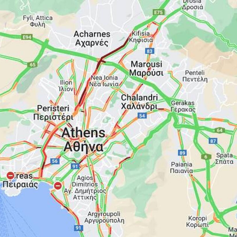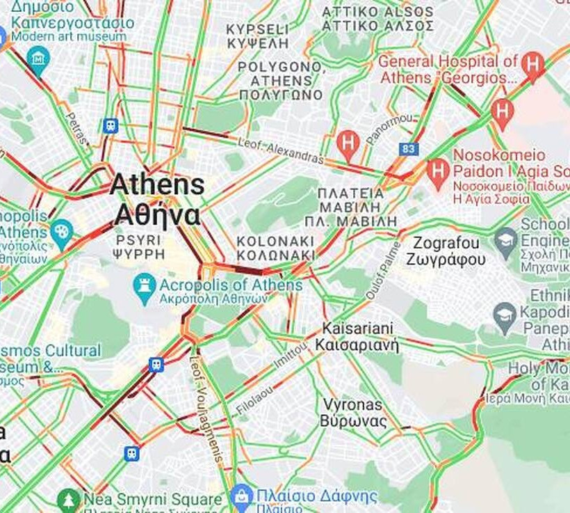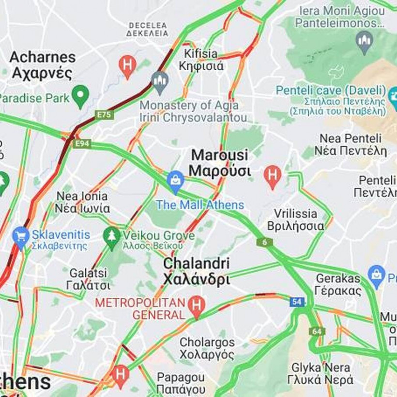 Κίνηση τώρα: Απελπισία ο Κηφισός, χαμός στο κέντρο και απέραντο... πάρκινγκ οι κεντρικές λεωφόροι
