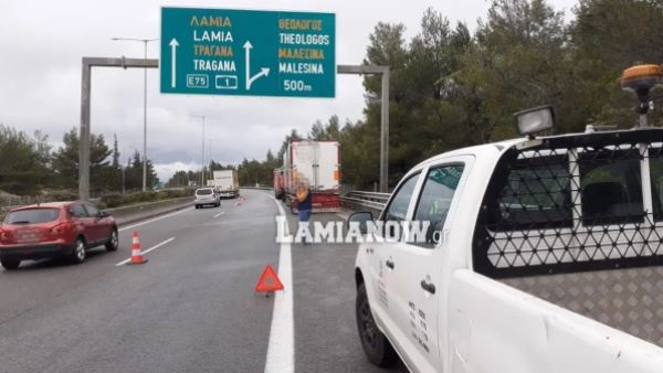 Λαμία: Φορτηγό γέμισε πετρέλαιο την Ε.Ο. στο υψος της Μαλεσίνας