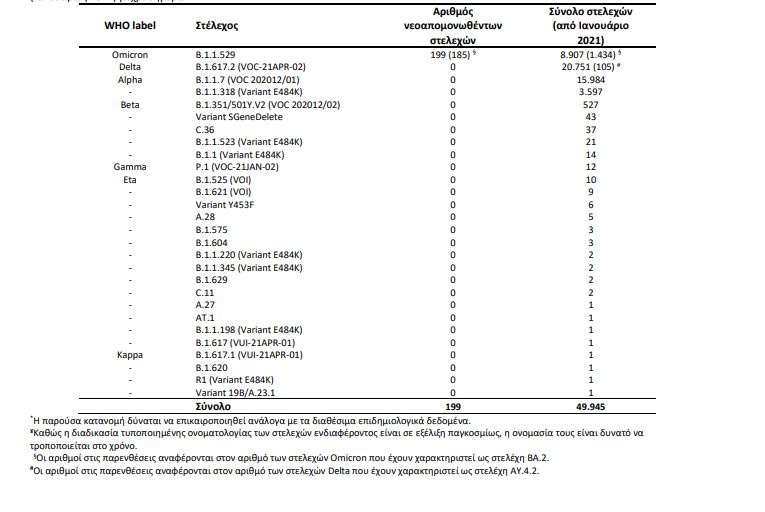 Of Concern - VOC), όλα Omicron (B.1.1.529). Εκατόν ογδόντα πέντε από τα 199 στελέχη Omicron αφορούσαν στο στέλεχος ΒΑ.2 (93%, ενώ την προηγούμενη εβδομάδα το αντίστοιχο ποσοστό ήταν 77%).
