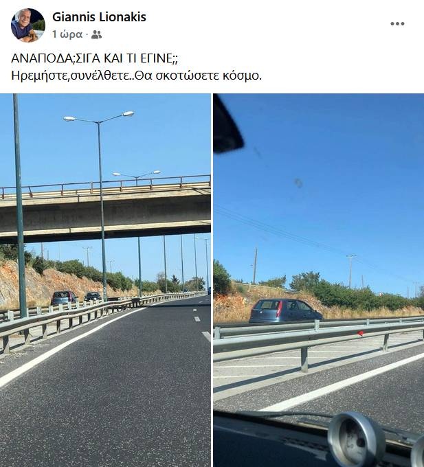 Το γεγονός γνωστοποίησε με ανάρτηση του στο Facebook, ο Γιάννης Λιονάκης πρόεδρος του Εθελοντικού Συλλόγου Πρόληψης Τροχαίων Ατυχημάτων.