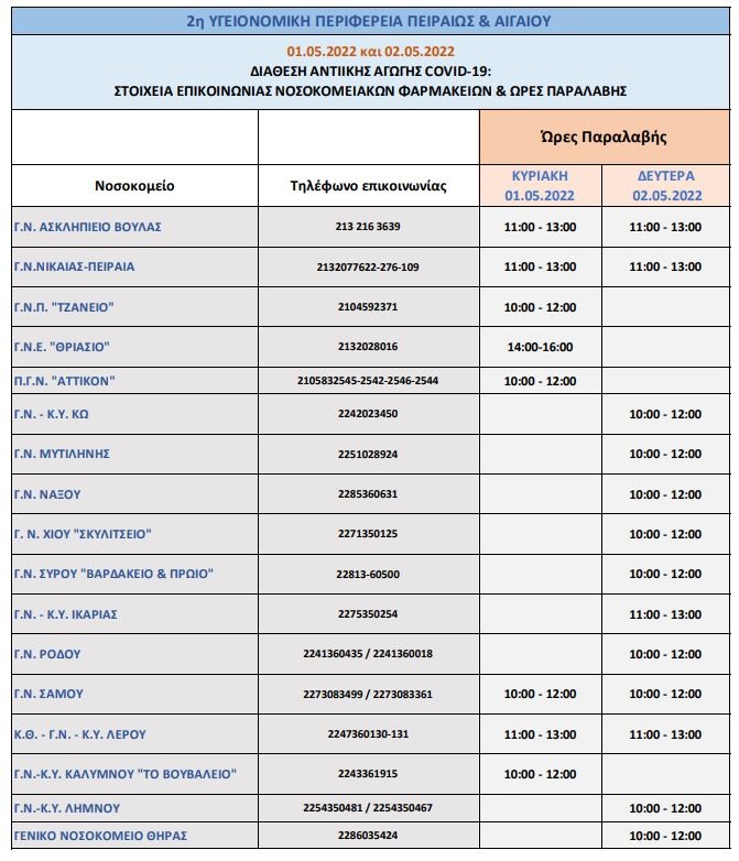 Επισυνάπτεται σχετικός πίνακας με τα σημεία παραλαβής των αντιικών θεραπειών ανά την Επικράτεια καθώς και τηλέφωνα επικοινωνίας των φαρμακείων.
